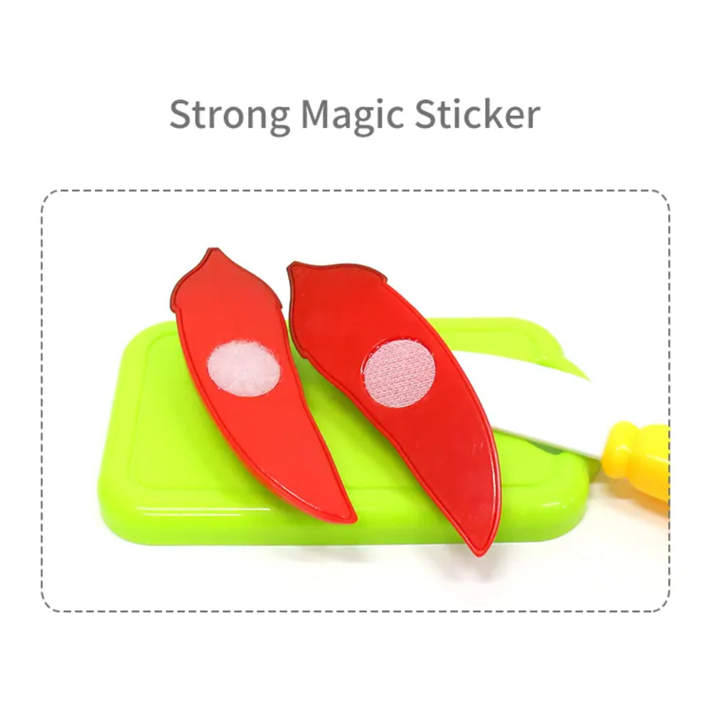 Este práctico set viene con 10 verduras con velcro para poder cortar y volver a unir tantas veces como quieran. Juego de roles que fomenta la imaginación y la creatividad de los niños, así como el desarrollo de habilidades importantes como sensoriales, afectivas y la coordinación viso-manual.