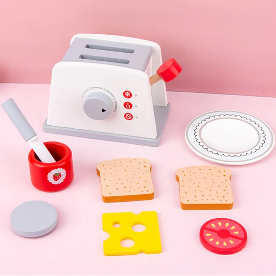 Set tostadora de madera que incentiva el juego de roles, la creatividad y el desarrollo de habilidades sociales.